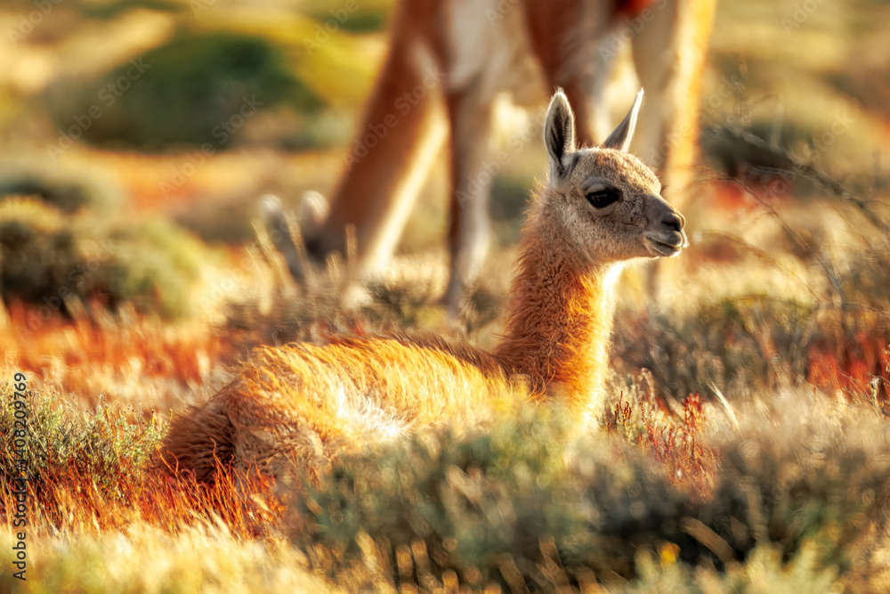 Guanacos in Torres del Paine Nationalpark, Patagonia, Chile