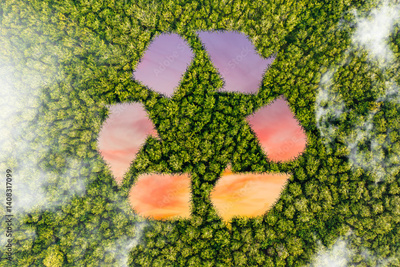 Recycled signage concept amidst the natural beauty of the natural environment. Ecological metaphor for ecological waste management and sustainable and frugal lifestyles.
