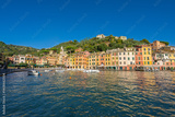 The village of Portofino is located in the Metropolitan City of Genoa on the Italian Riviera, Italy