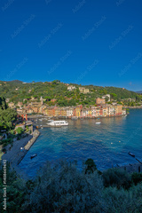 The village of Portofino is located in the Metropolitan City of Genoa on the Italian Riviera, Italy