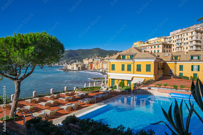 The village of Camogli is a fishing village and tourist resort located on the west side of the peninsula of Portofino, on the Golfo Paradiso Riviera di Levante, Italy