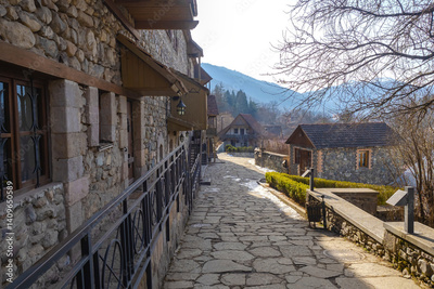 Mountain resort in Armenia. City Dilijan. Armenia in autumn weather. Old two-story stone house. Mountain resort in Transcaucasia. Ancient village in Armenia. Cityscape in Dilijan. Authentic buildings