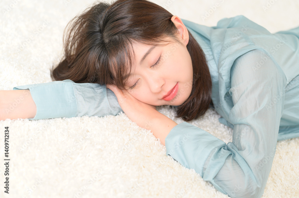 うつ伏せに寝る日本人女性