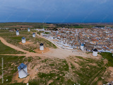 Aerial view of the windmills of Campo de Criptana, Ciudad Real, Castilla-La Mancha, Spain