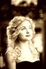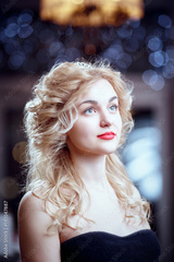 Beautiful girl light brown hair with an elegant hairstyle , hair wave ,curly hairstyle