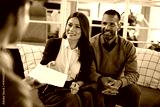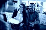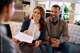 Happy couple receiving an offer from insurance agent during a meeting in the office.