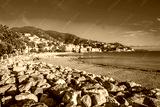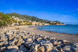 The Town of Rapallo in the Metropolitan City of Genoa, in the Italian region of Liguria, Italy, with Castello di Rapallo