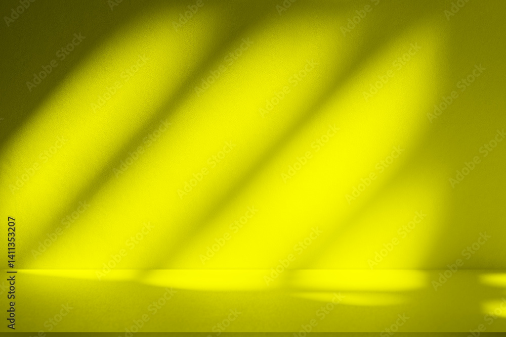 Wall interior background, studio and backdrops show products. with leaf shadow from window color yellow and white. background for text insertion and presentation of product