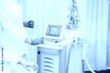 Skin Treatment Laser Equipment. Medical Worker Sets Indices On Screen Of Laser for cosmetic procedures. Close up Beautician Using Beauty Machine In Cosmetology Center, Beauty Salon. Selective focus