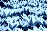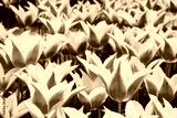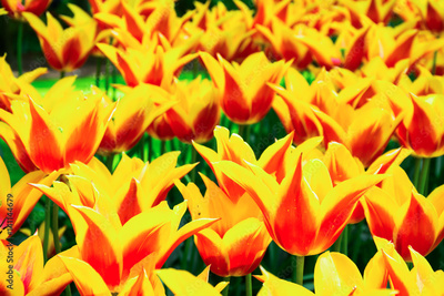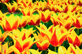 Blooming yellow-red tulips in lawn, selective focus, in Keukenhof park in Netherlands, Europe