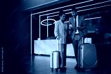 Happy black businesswoman and her coworker staying in at hotel on their business travel.