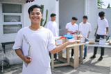 Young Male Holding Donation List in Clipboard and Showing Another Volunteers Working in Charity Organization, Packing Donations Boxes