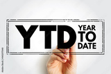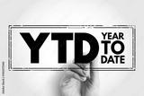 YTD Year To Date - period of time beginning the first day of the current calendar year or fiscal year up to the current date, acronym text stamp
