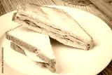 Deliciously crafted sandwich showcases layers of ham, cheese, and fresh vegetables