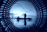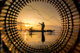 Fisherman is fishing at lake in Chonburi, Thailand.