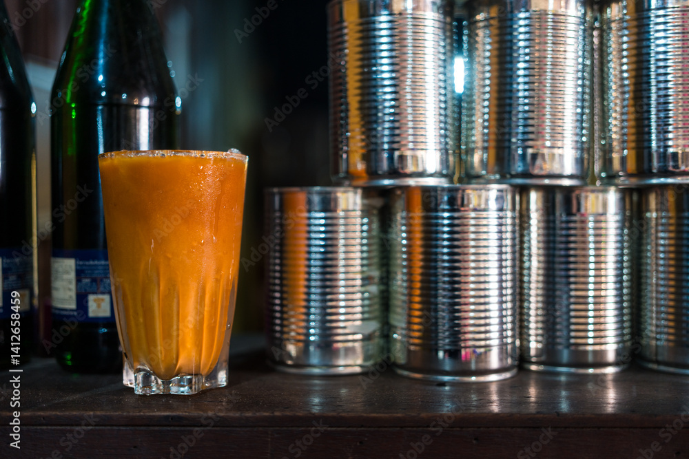 Classic set menu of Thai tea with condensed milk served vintage glass. Thai drink vintage style menu, is a traditional Thai drink that has long been popular