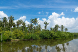 Tropical palm forest on the river bank. Tropical thickets mangrove forest on the island of Sri Lanka.