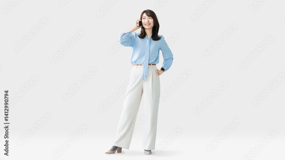 スマートフォンで話す笑顔の女性・ビジネスウーマン