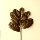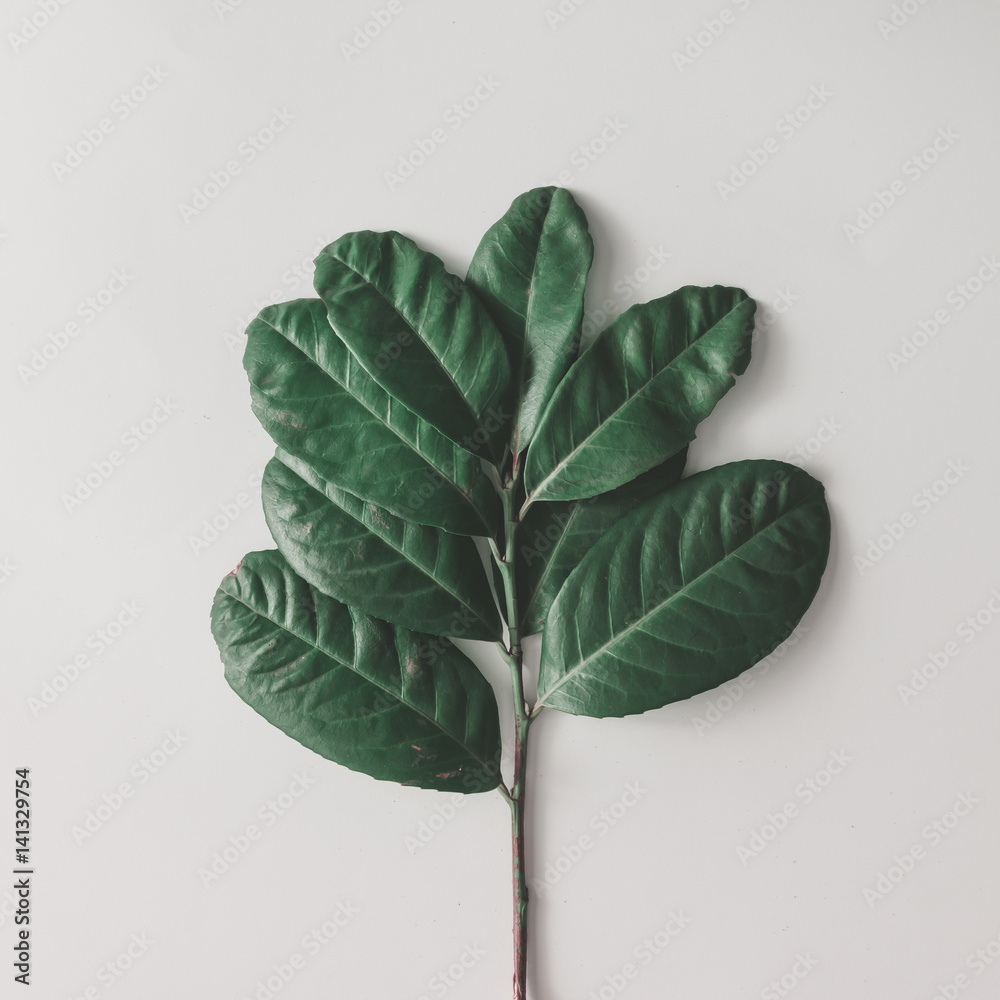 Creative minimal arrangement of leaves on bright white background. Flat lay. Nature concept.