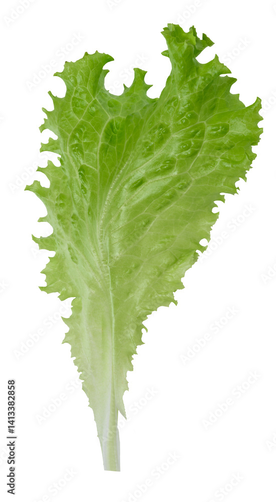 Green lettuce leaf with ruffled edges, isolated background, close up