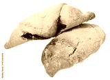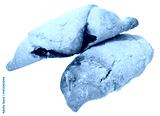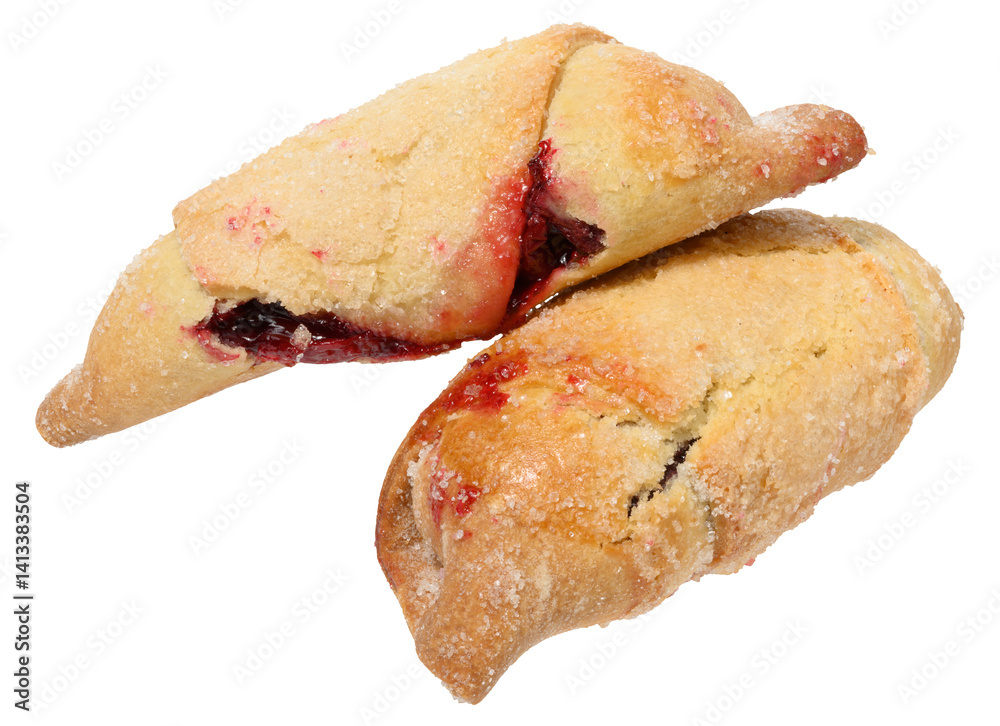 Two cookies filled with raspberry jam and sprinkled with sugar, isolated background. The pastry is golden brown