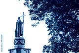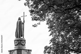 Statue of Vladimir The Great in Kiev, Ukraine, back view in black and white with copy space..Saint Vladimir is the baptizer of Kievan Rus