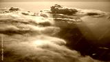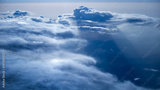 Over the clouds in early morning. Clouds with sun rays in blue sky