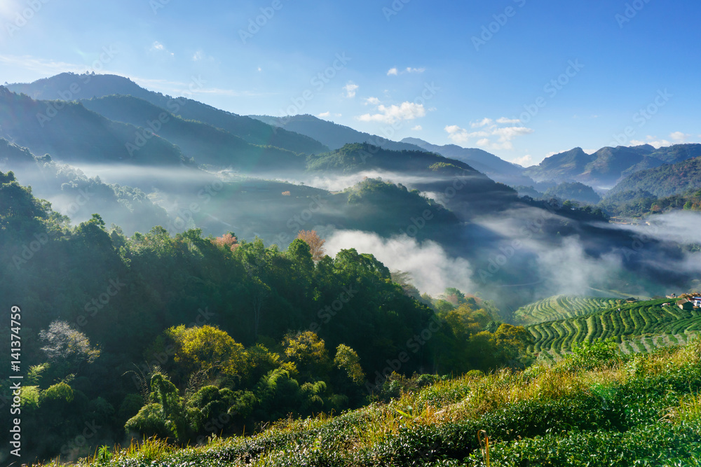 Tea plantation beautiful landscape famous tourist attraction at Doi at Doi Ang Khang, Chiang Mai Thailand