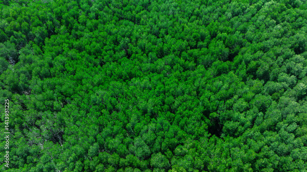 aerial view of dark green forest Abundant natural ecosystems of rainforest. Concept of nature forest preservation and reforestation.