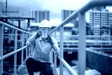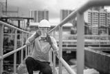 Engineer take water from wastewater treatment pond to check the quality of the water after going through program wastewater treatment process in industry environment concept.