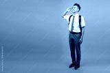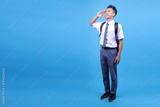 Full Body of Indonesian Male High School Student in Uniform Hand Salute Gesture