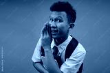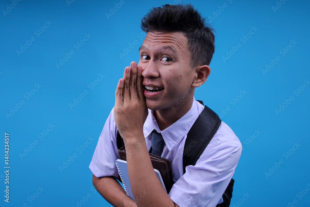 Young Asian Man In High School Student Uniform Telling Secret Rumor And Covering Mouth With Hand