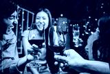 oyful young adults toast with wine glasses at a festive indoor party, celebrating friendship, holidays, and special moments together.