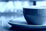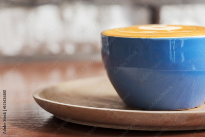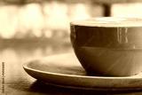 Hot Coffee cup with stream of vapour against white brick wall background.