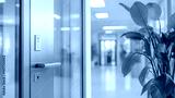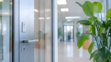 Modern office entrance with blurred interior and door bright environment professional atmosphere