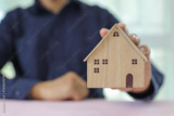 Hand choose house for financial planning and plan of money savings or for home loan management for buy housing residential or family insurance or banking agreement.