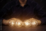 Light bulb with bright light for business plan goal and creative idea innovation or study education or analyzing marketing data management and target growth or human resources concept.