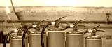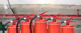Fire extinguisher for prevent or prepare fire equipment for prevention in emergency case and safety or rescue and alarm system training concept.