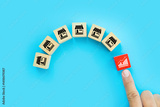 Hand choose wooden block stack with graph and franchise icon for goal to growth is investment planning financial and branch expansion and management bank loans or marketing franchising business.