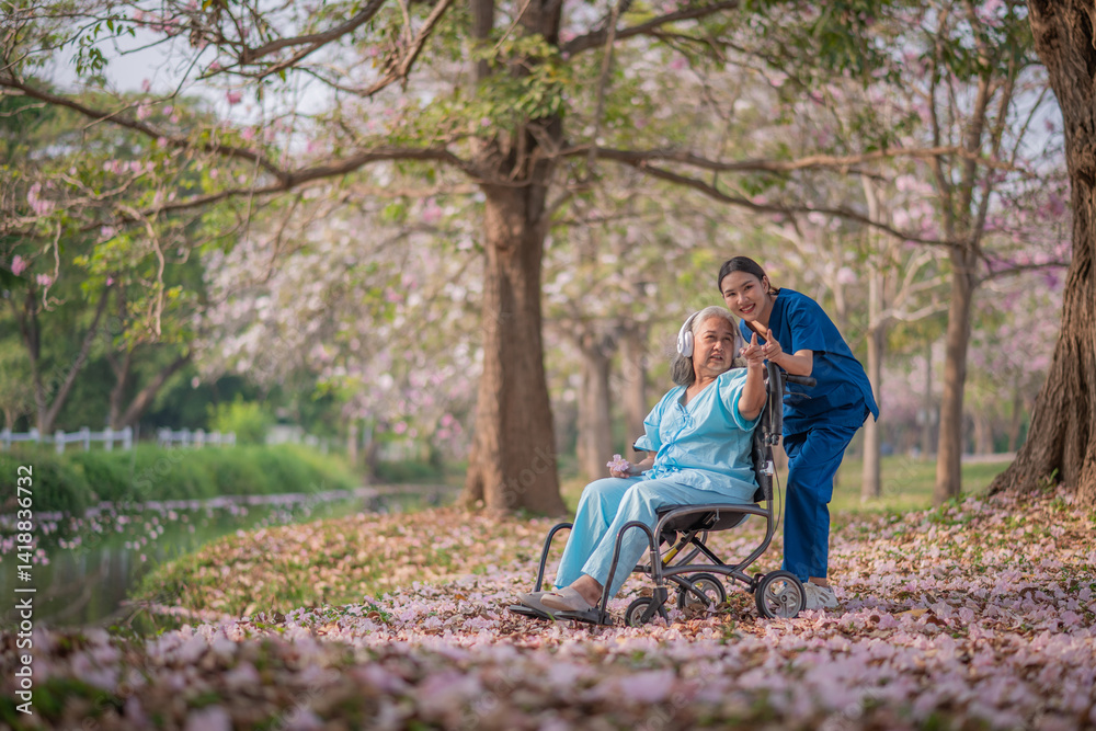 Healthcare or physical therapy nurse is helping elderly appears relaxed listen music engaged in an exercise routine caregiver individuals focused on rehabilitation exercises elder concept.