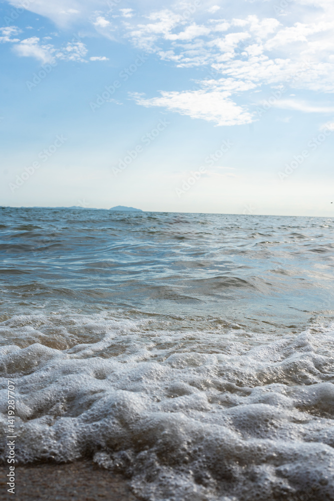Water wave surf to beach in the sea at Bangsan beach in Chonburi at Thailand