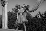 Beautiful, shapely woman in elegant luxury evening dress sensually walks around the city on a sunny summer day. Luxury summer fashion