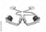 Exhaust pipes system fron view without shadow isolated on white background 3d