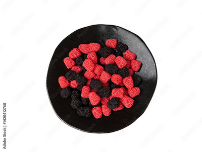 Gummy berries, chewy raspberries or jelly blackberries, gelatin candies fruit marmalade