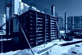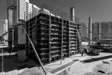 Construction of the building. Pouring concrete into the formwork.