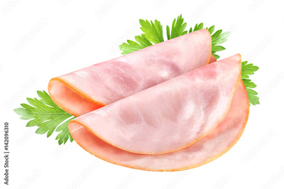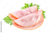 Isolated ham. Two slices of smoked ham isolated on white background with clipping path