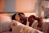 Young couple in love enjoying in relaxing morning in bedroom.