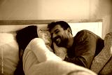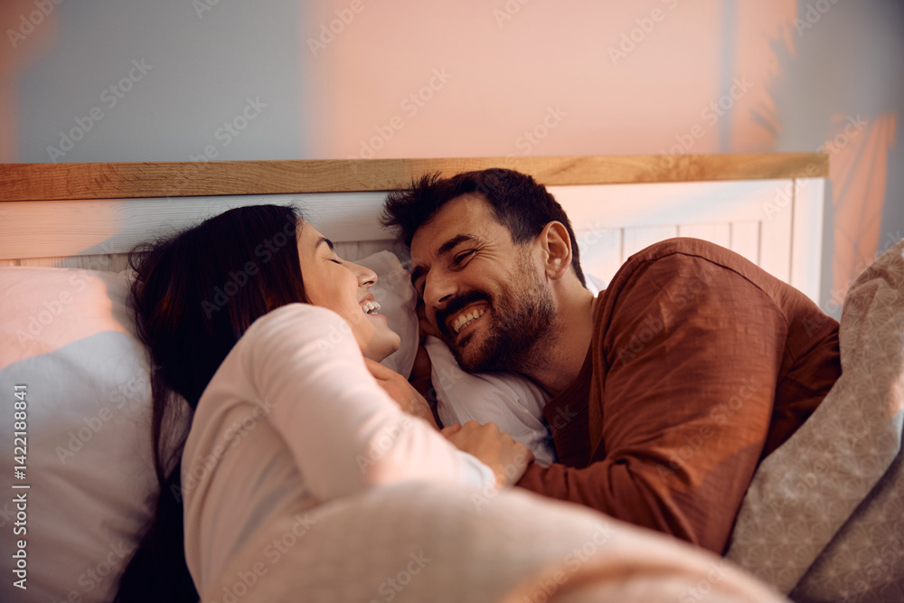 Happy couple in love enjoying in waking up together at home.