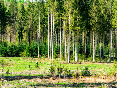 Wiederaufforstung mit Jungbäumen im Mischwald
