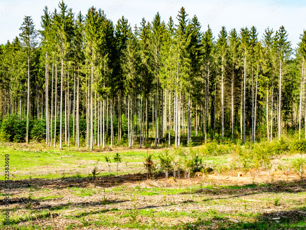 Wiederaufforstung mit Jungbäumen im Mischwald
